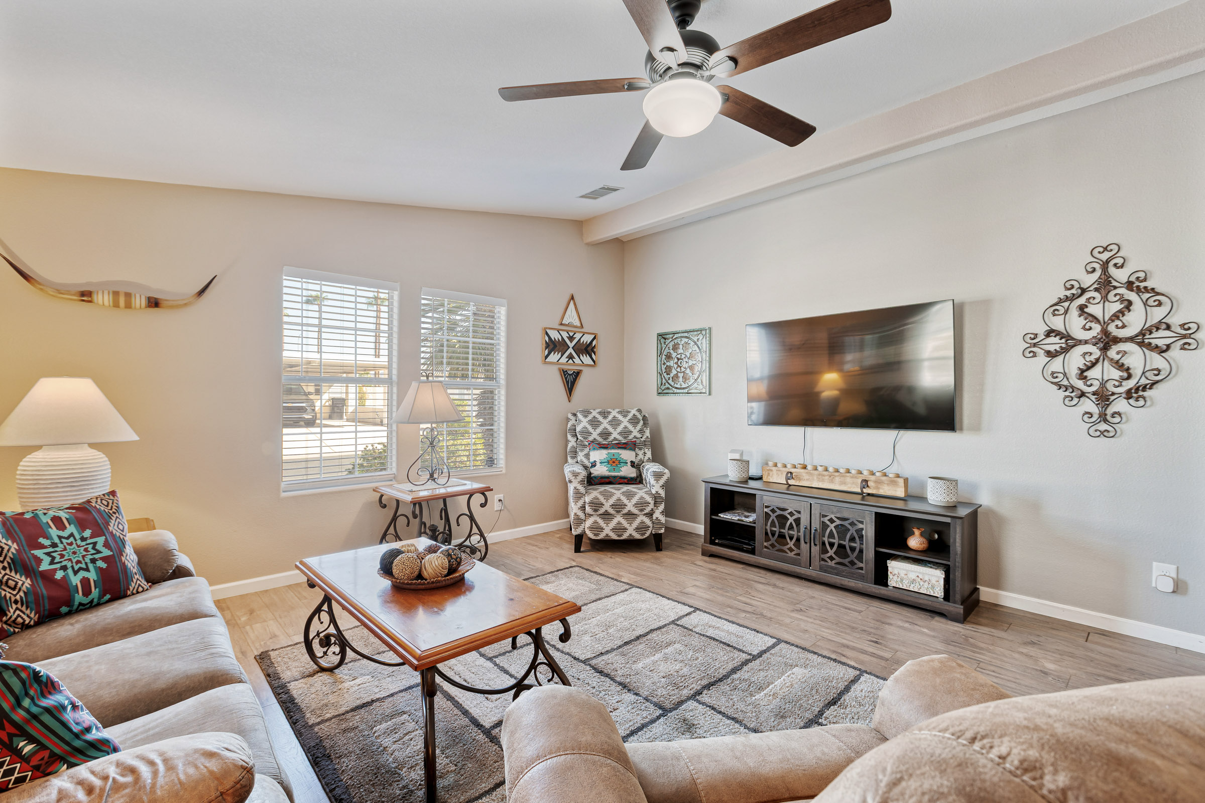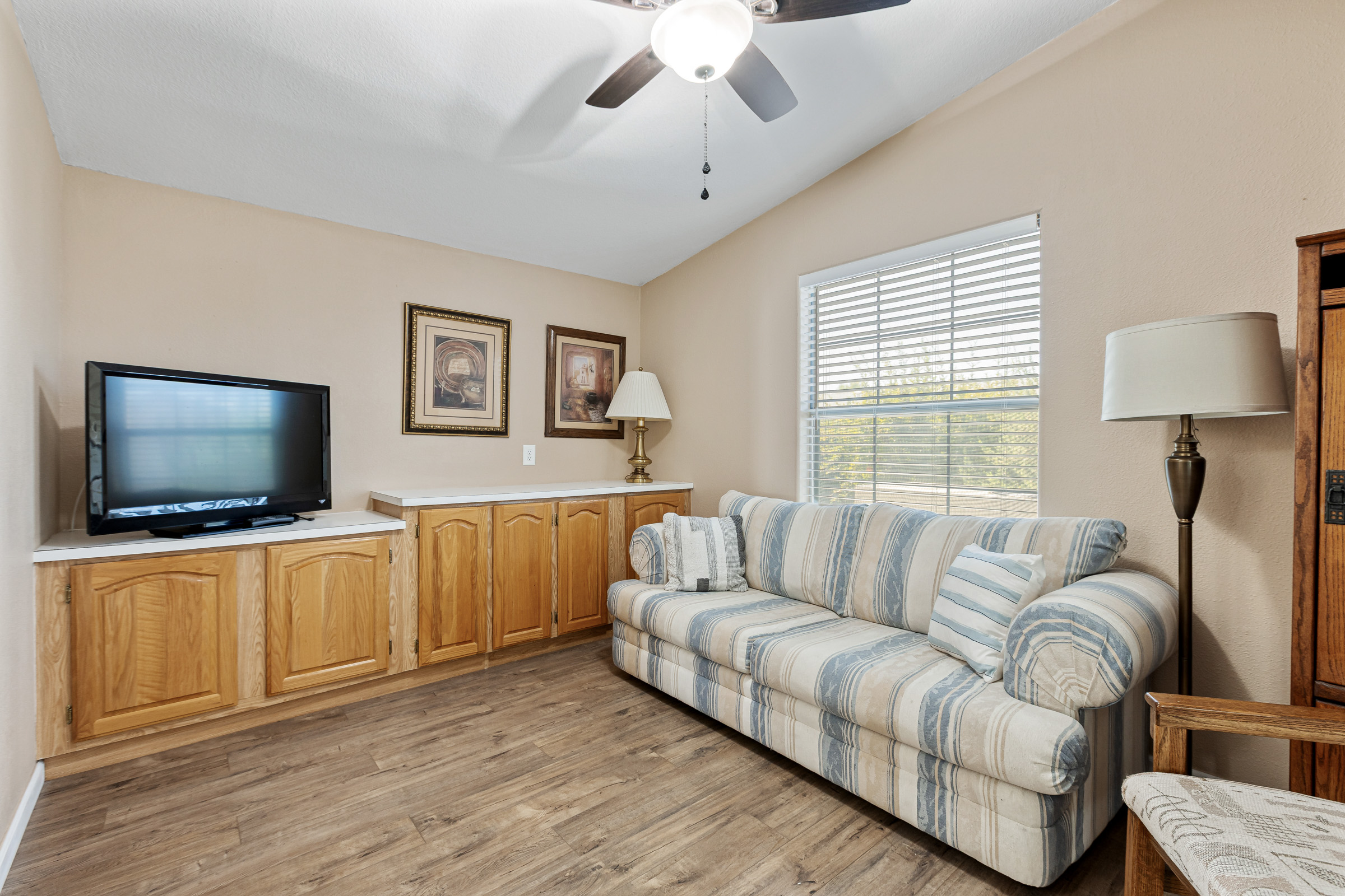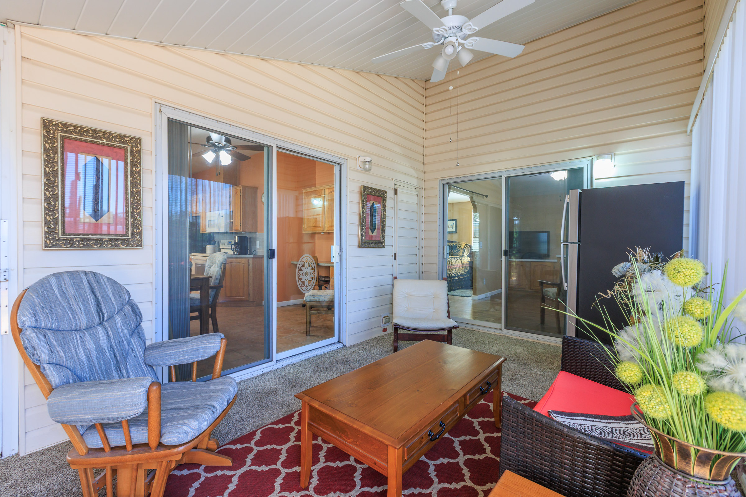 This charming, fully furnished turnkey home offers comfort and convenience! Featuring a glass-enclosed Arizona room and a den off the primary bedroom, it boasts stylish furnishings and thoughtful upgrades like a new shower and window sunshades. A versatile bonus room connects the primary bedroom and AZ room, while the lovely open patio and the laundry room is also just off the AZ room. Move-in ready and beautifully maintained, this home is perfect for relaxed, easy living with extra space to enjoy.