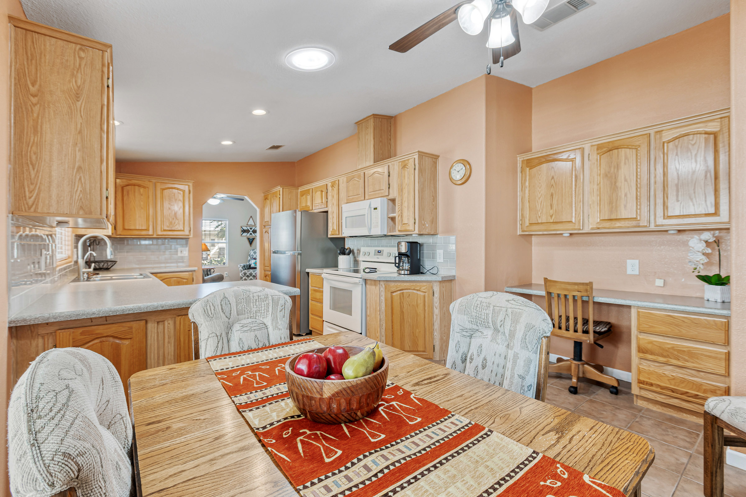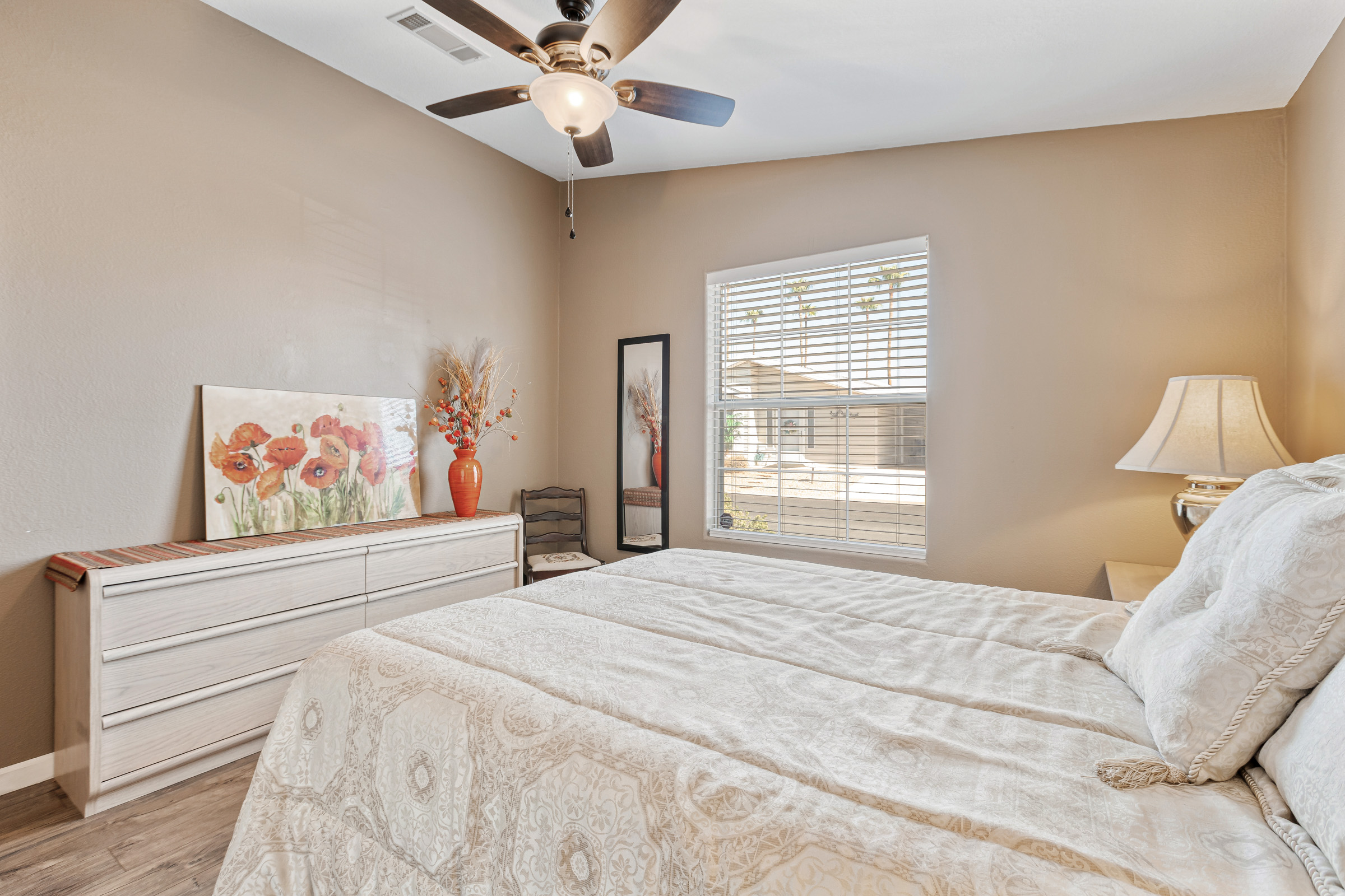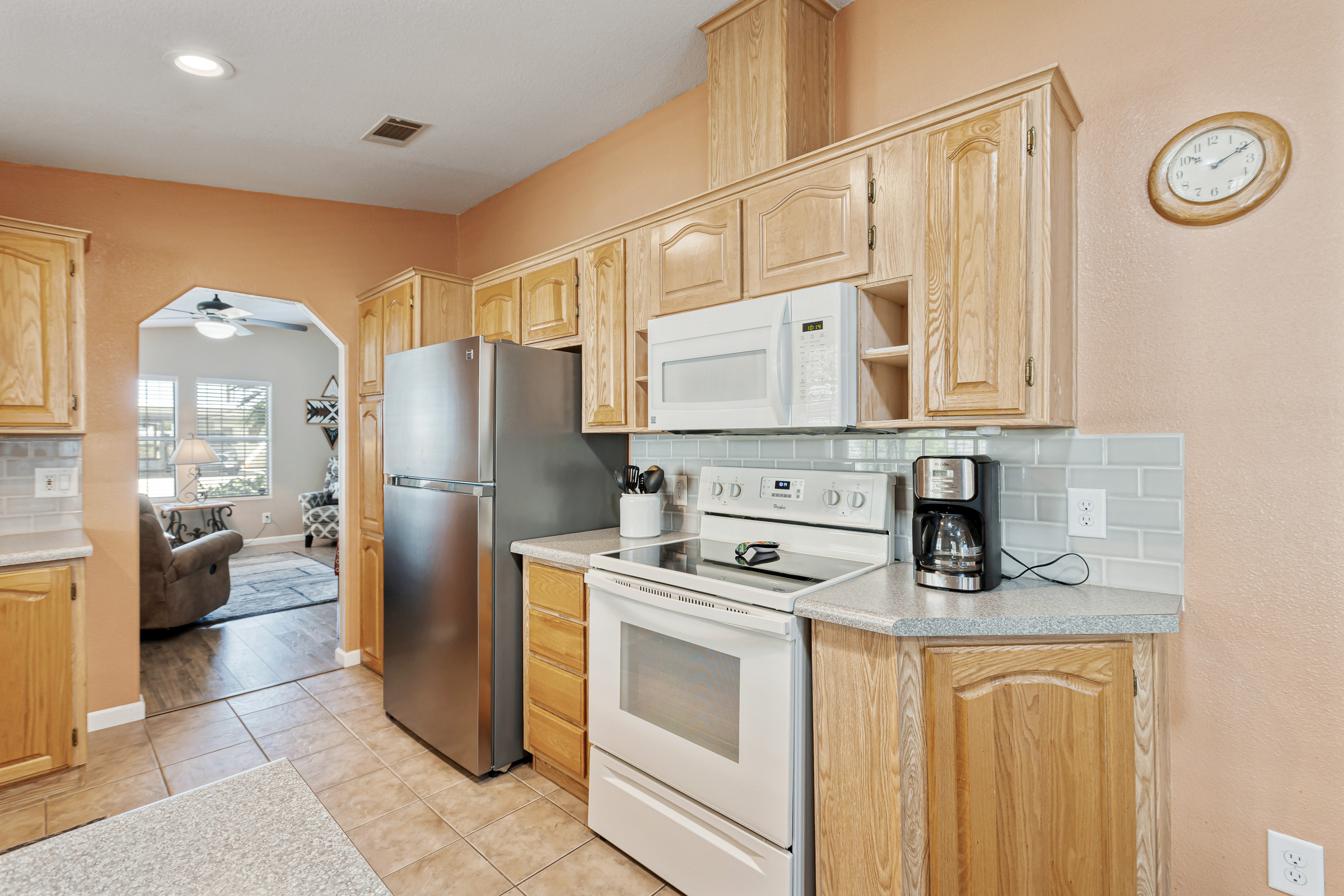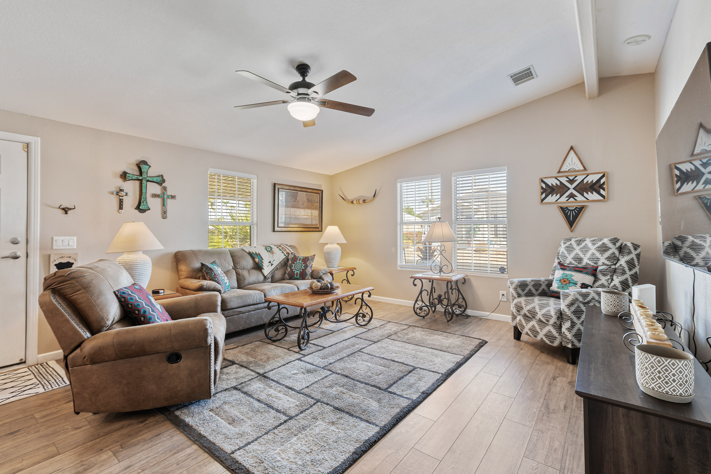 This charming, fully furnished turnkey home offers comfort and convenience! Featuring a glass-enclosed Arizona room and a den off the primary bedroom, it boasts stylish furnishings and thoughtful upgrades like a new shower and window sunshades. A versatile bonus room connects the primary bedroom and AZ room, while the lovely open patio and the laundry room is also just off the AZ room. Move-in ready and beautifully maintained, this home is perfect for relaxed, easy living with extra space to enjoy.