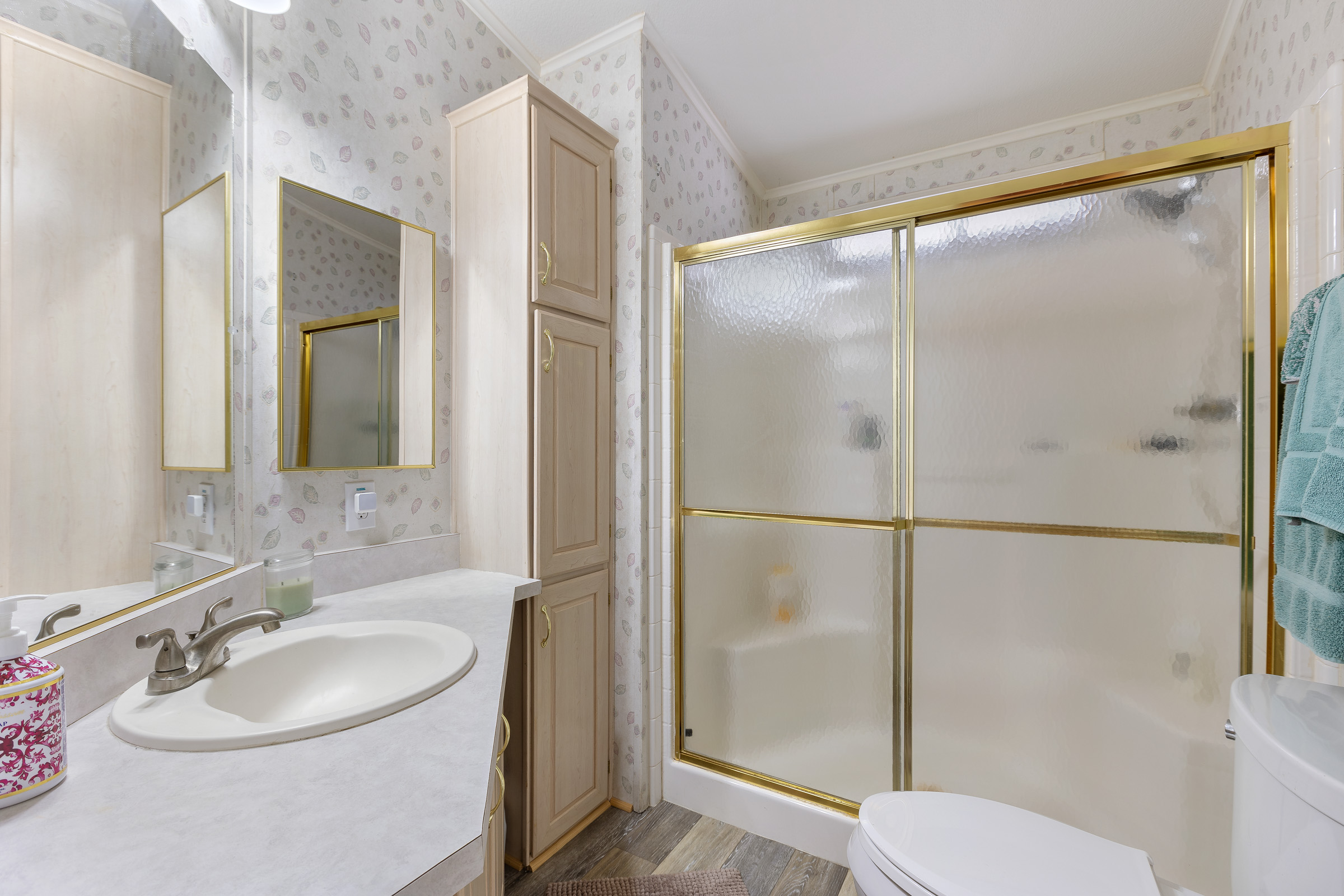 - Wood cabinet doors with molding throughout