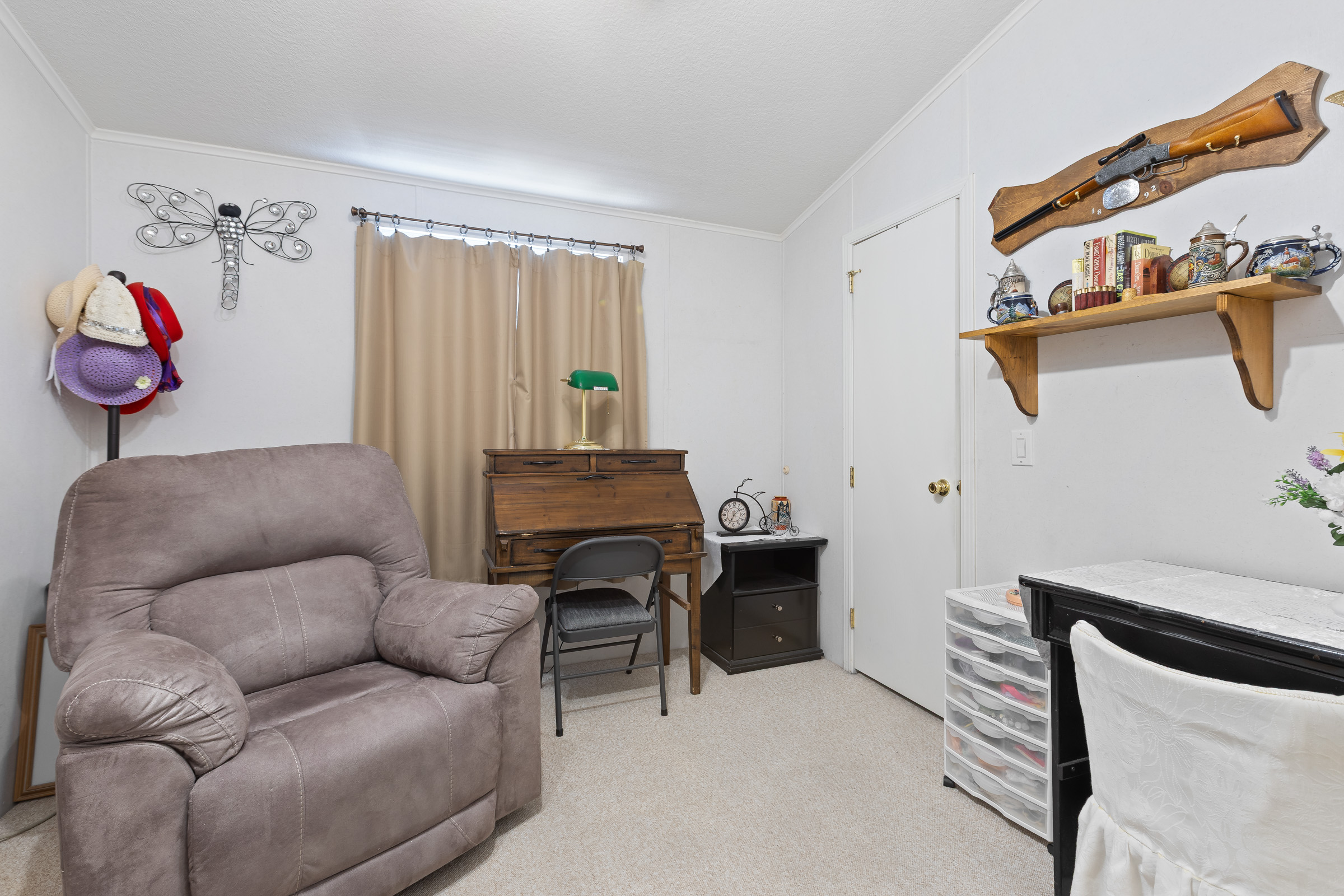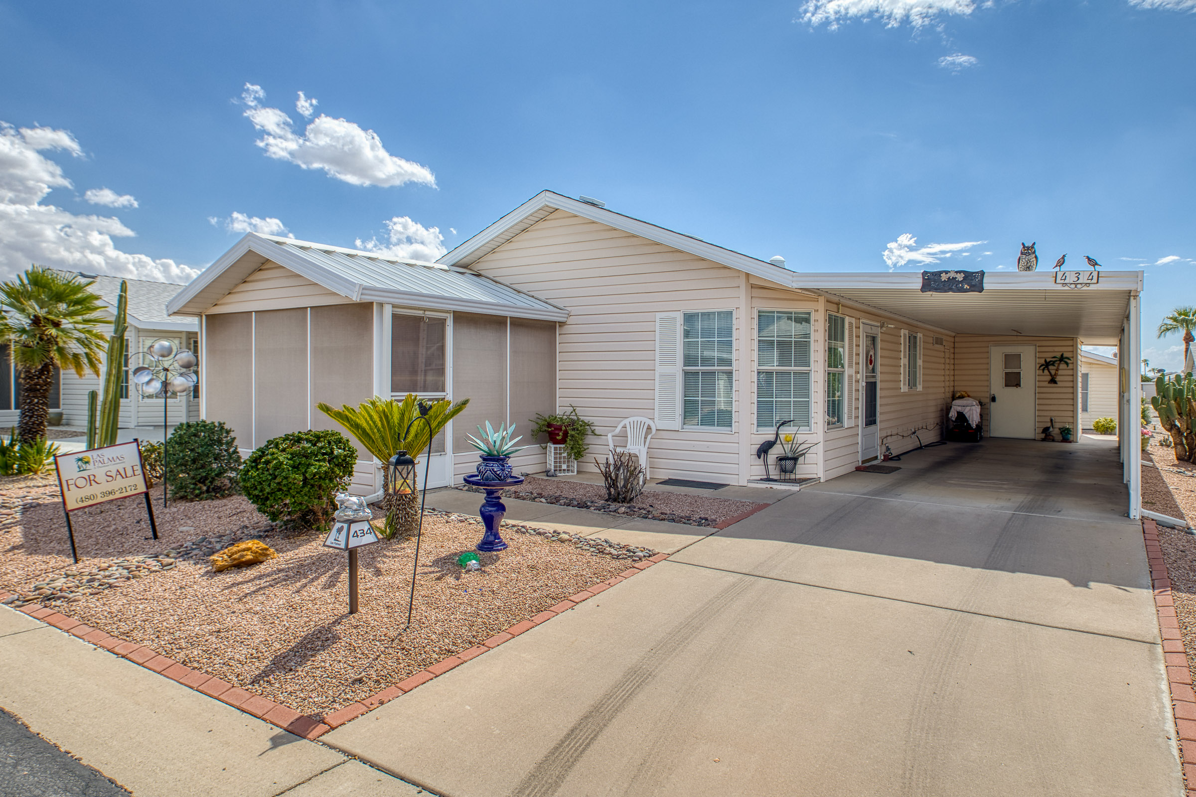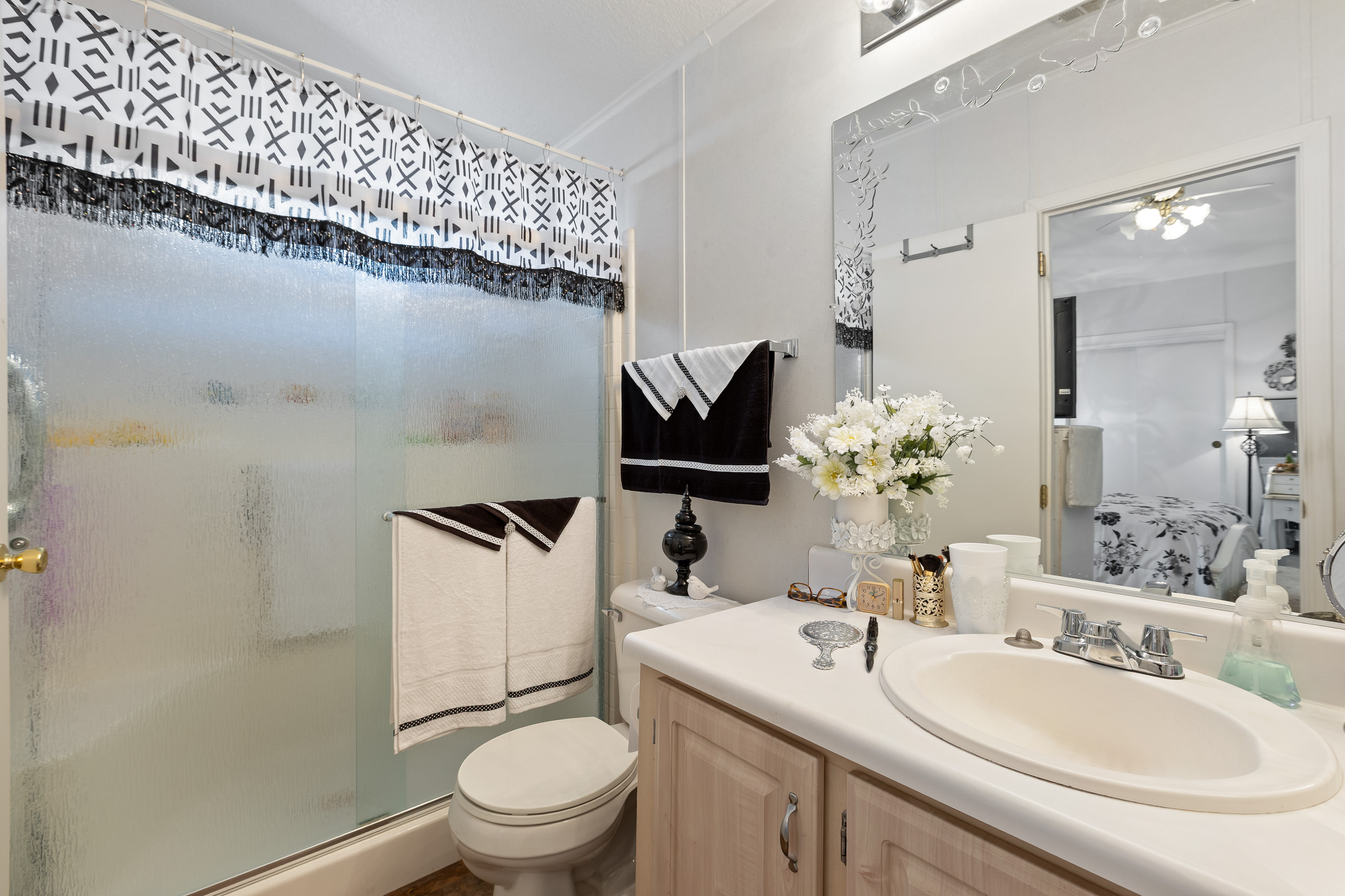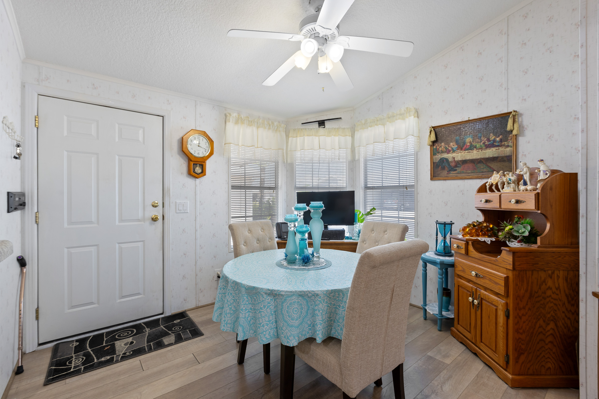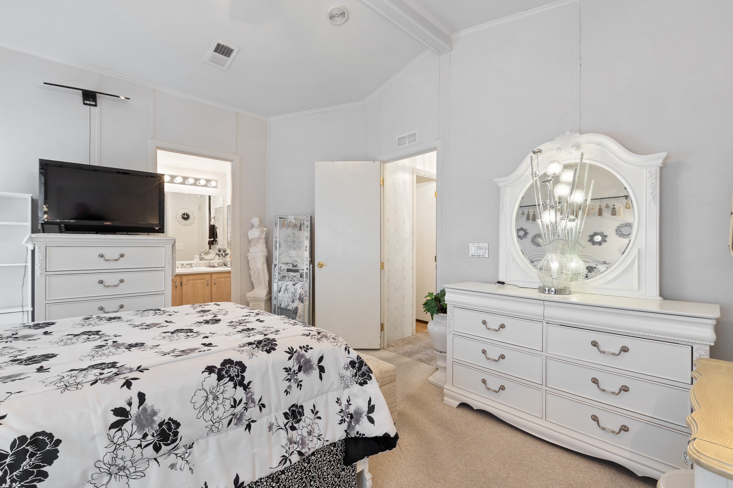 Charming 2BD/2BA open-concept home with cathedral ceilings and abundant natural light. Bay windows grace the dining area, while a raised breakfast bar offers the perfect spot for morning coffee. The bright living space flows into a spacious Arizona room for added comfort. Both bedrooms feature walk-in closets, and the primary suite includes an en suite bath with a walk-in shower and full-size linen closet. A well-designed layout makes this home both functional and inviting.