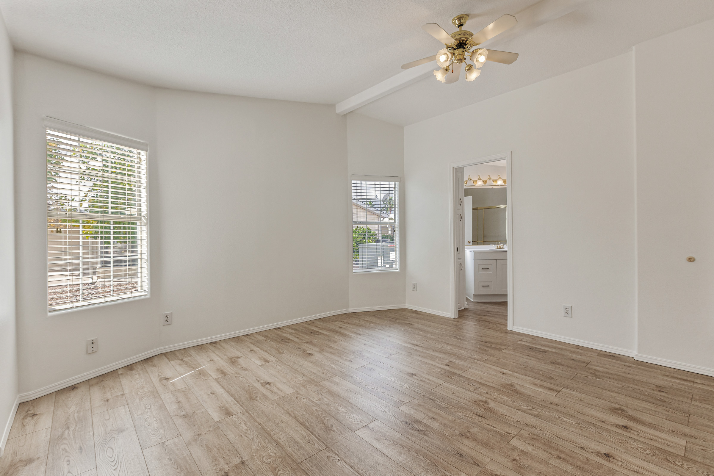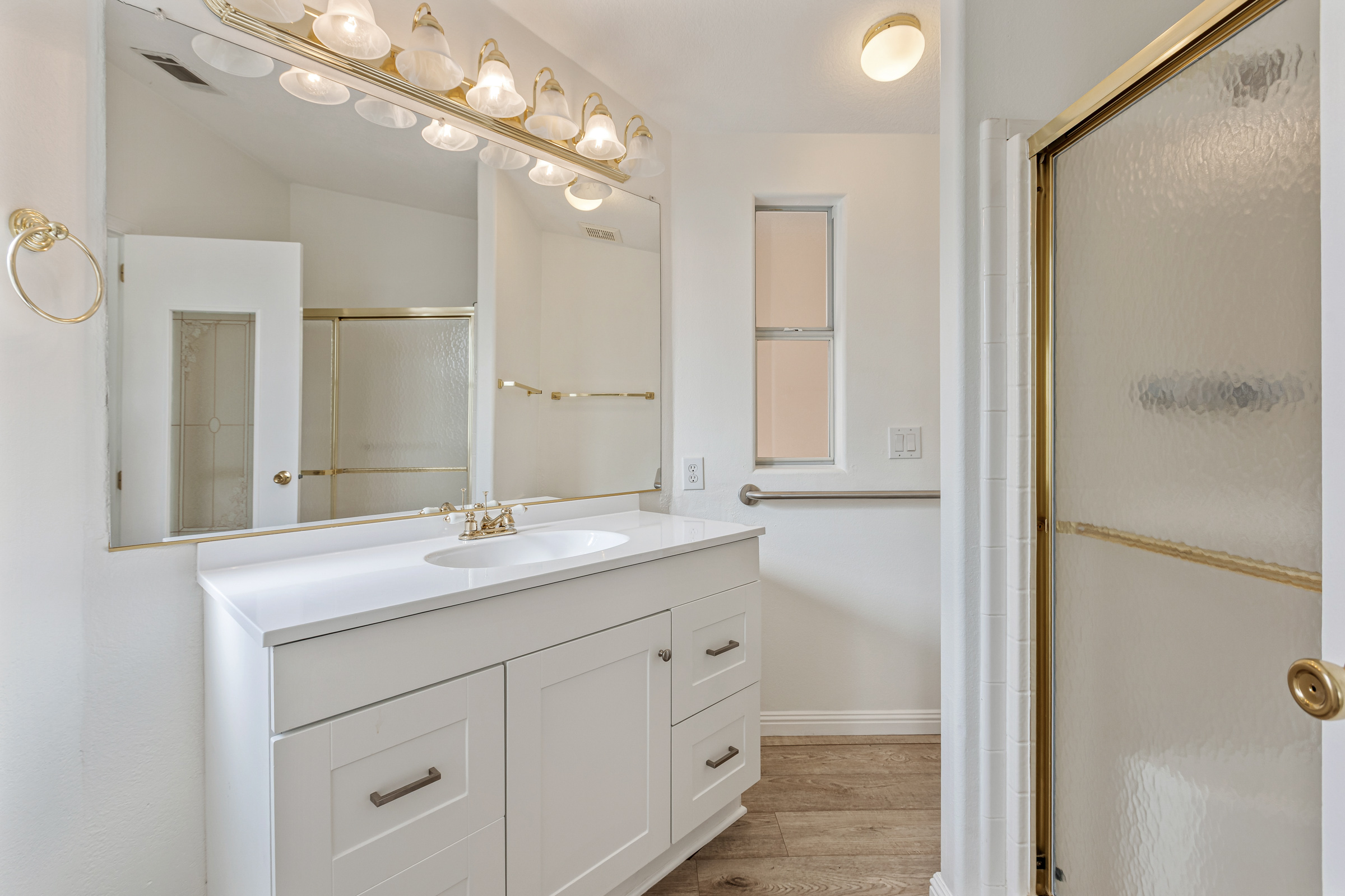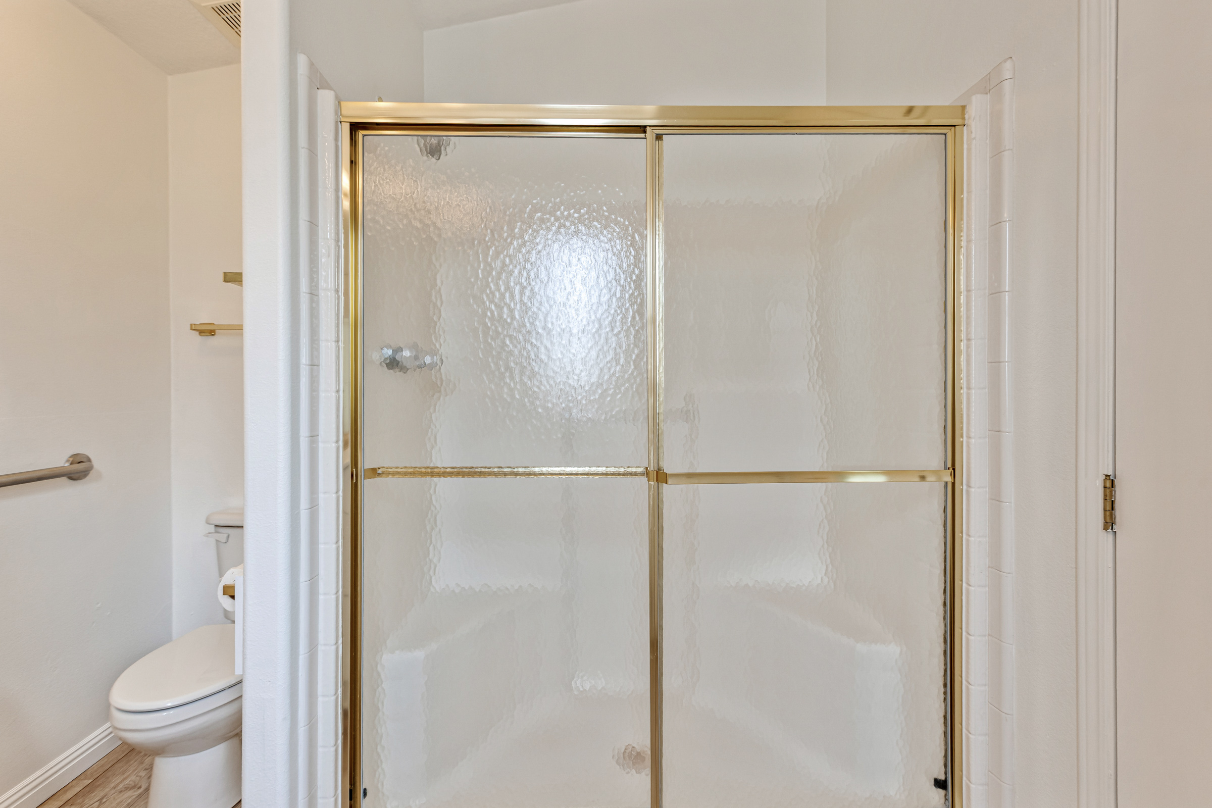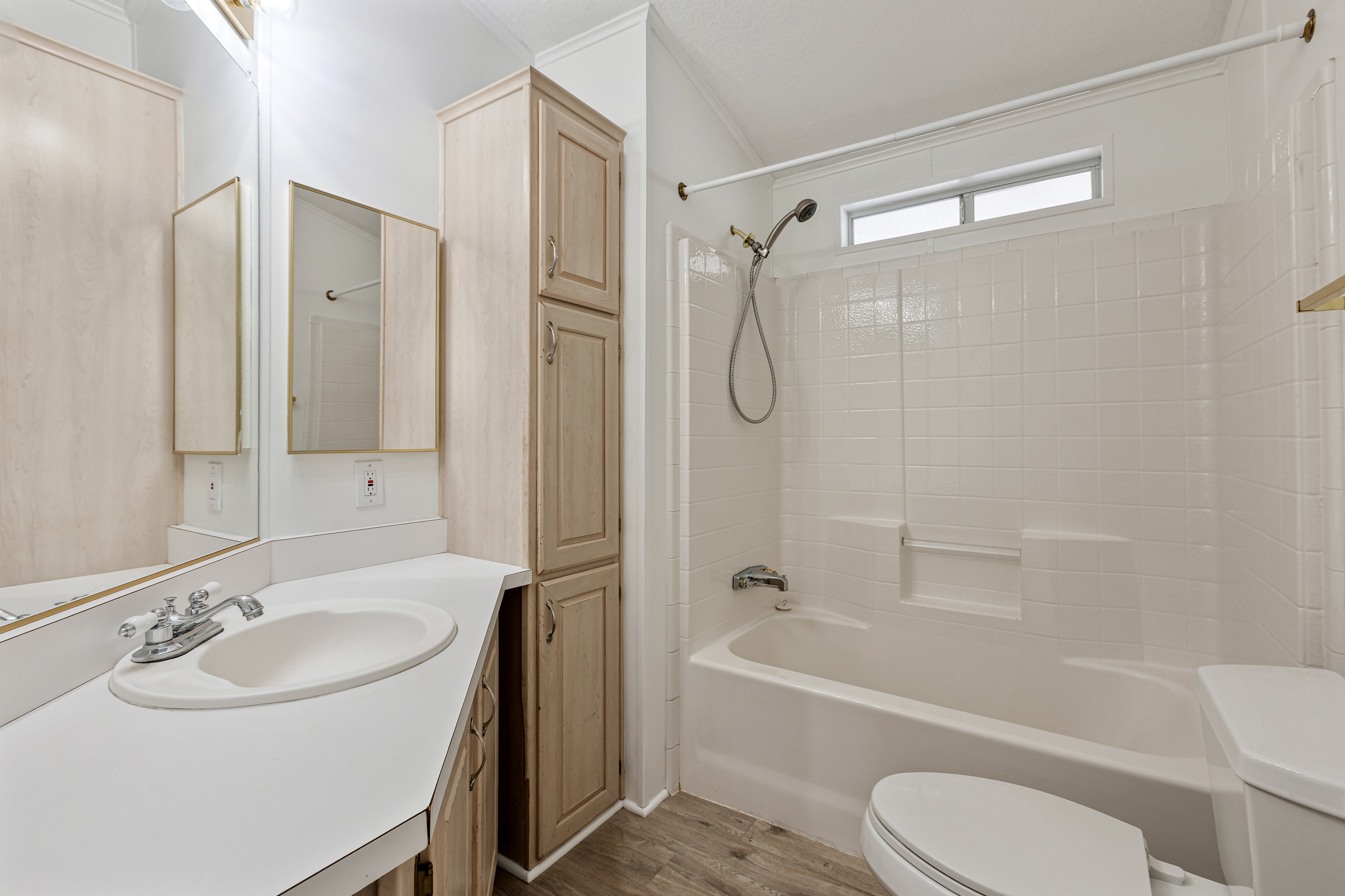 Bright and inviting 2bd/2ba Monterey home featuring a spacious kitchen with bay window, coffee bar, and newer stainless-steel appliances. The primary bedroom accommodates a king set, boasts and extra-long closet, and an updated en suite bath with a step-in shower. The guest bedroom fits a queen set and has a full-size closet. Enjoy vinyl flooring, and indoor laundry room with storage, and outdoor storage shed and a screened in Arizona room – perfect for relaxing or entertaining.