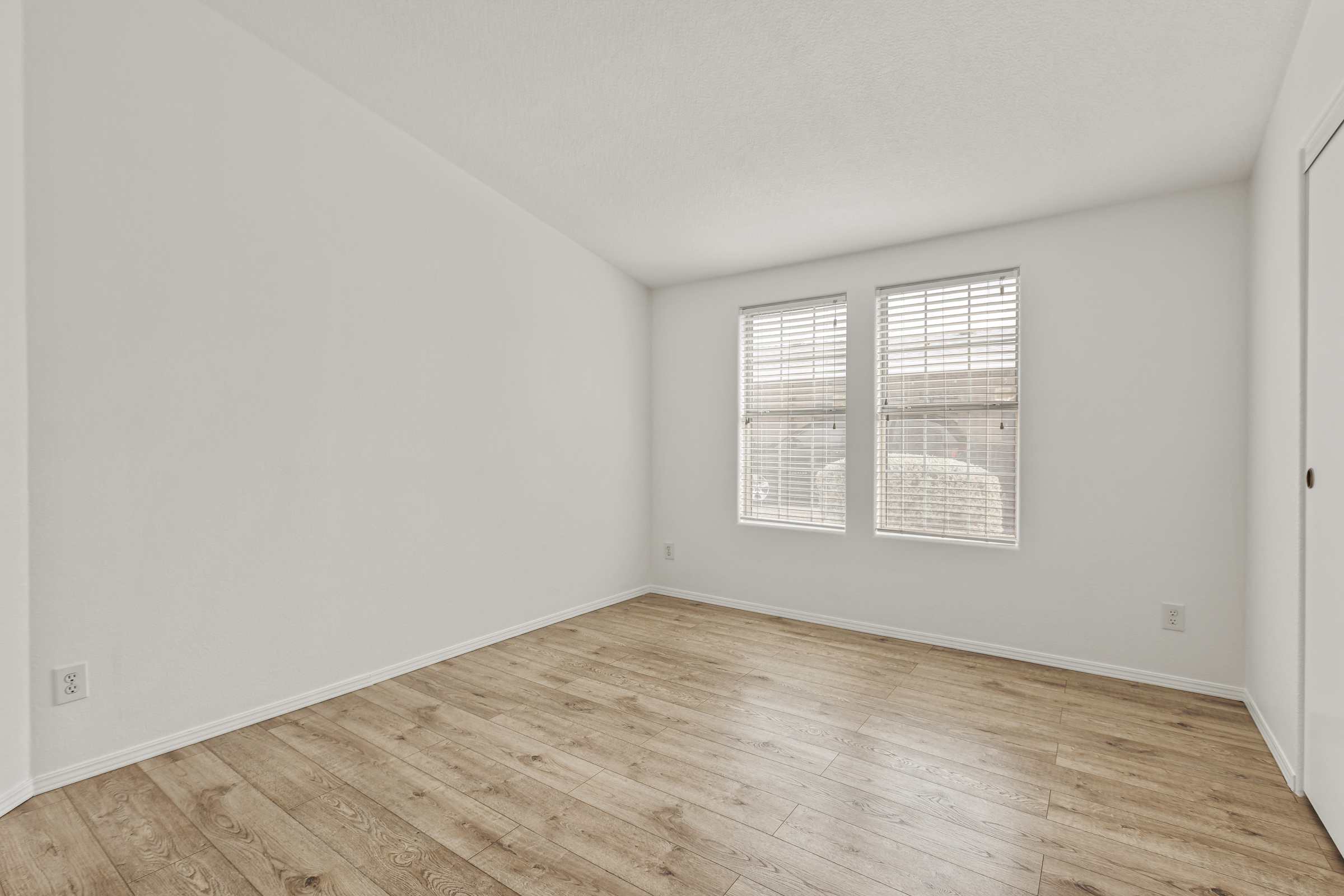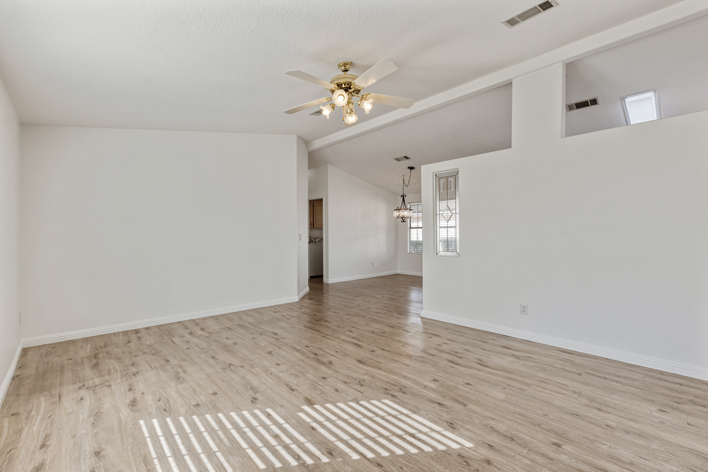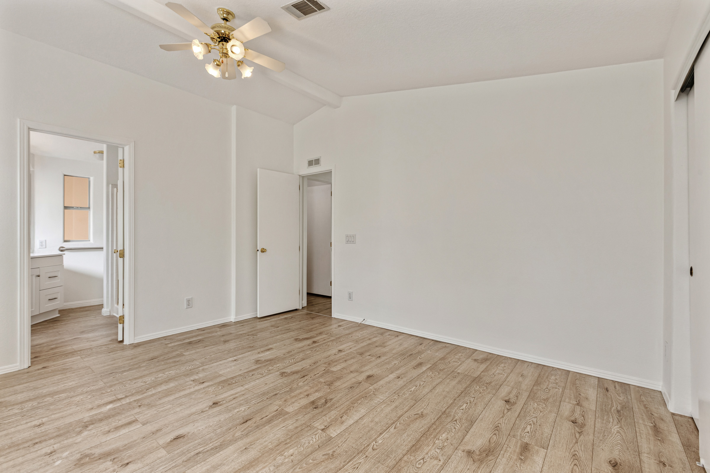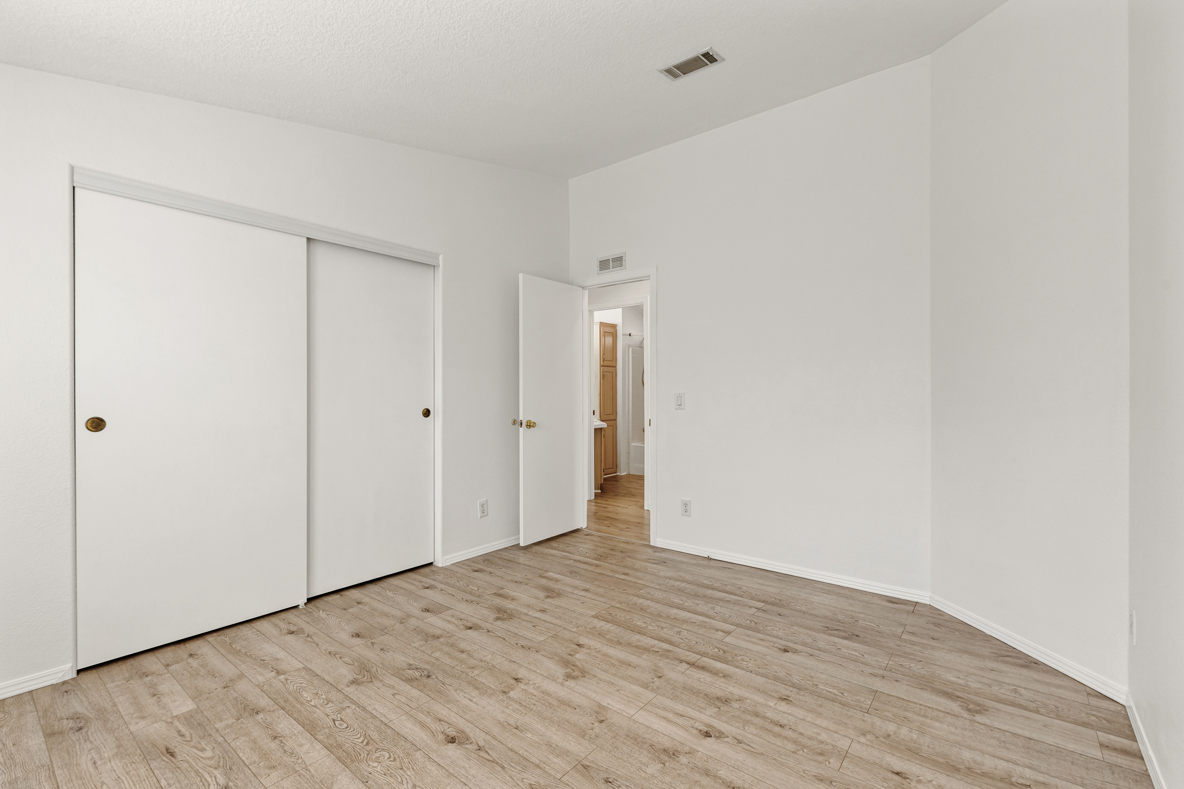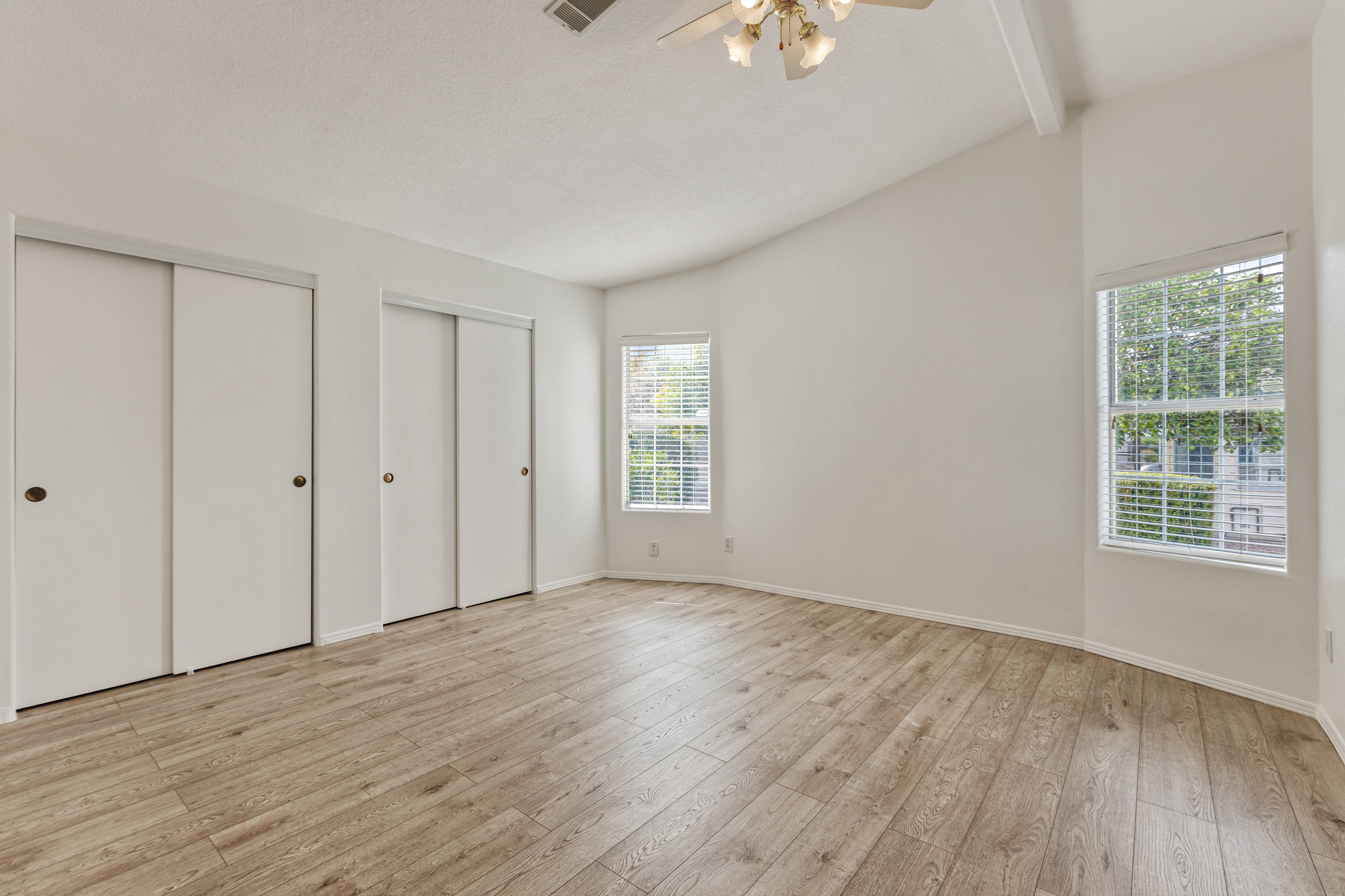 Bright and inviting 2bd/2ba Monterey home featuring a spacious kitchen with bay window, coffee bar, and newer stainless-steel appliances. The primary bedroom accommodates a king set, boasts and extra-long closet, and an updated en suite bath with a step-in shower. The guest bedroom fits a queen set and has a full-size closet. Enjoy vinyl flooring, and indoor laundry room with storage, and outdoor storage shed and a screened in Arizona room – perfect for relaxing or entertaining.