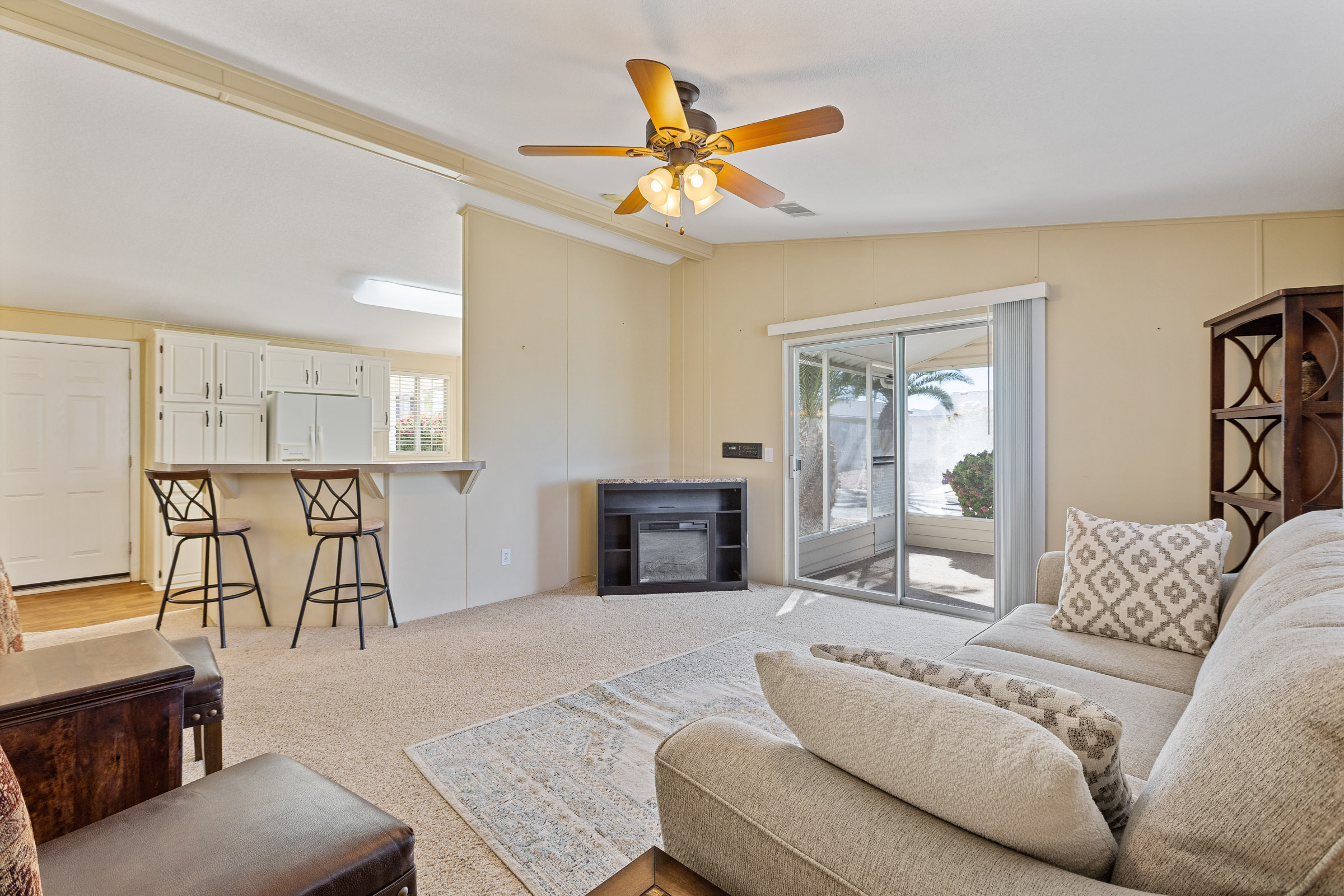 Welcome to your new home! This tidy, cozy, and partially furnished 2-bedroom, 2-bath residence offers move-in-ready comfort and a relaxing resort-style atmosphere. Enjoy your mornings or evenings on the screened-in porch, surrounded by beautifully landscaped palm trees that create a tropical retreat. Perfect for easy living, this home combines comfort, convenience, and style—all in one inviting package.