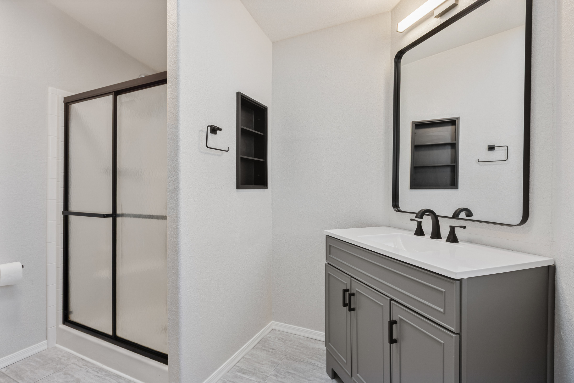 - Water line connections with brass and copper fittings and shut-off valves throughout